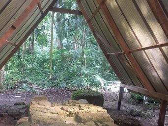 Der nächste Tag beginnt mit dem Brüllen der Affen. Früh am Morgen geht’s nach dem Frühstück wieder aufs Boot um zu unserem Startpunkt, der Wanderung nach Waka Peru, zu gelangen. Schon nach wenigen Minuten hören und sehen wir die ersten Klammeraffen. Bald schon haben wir das Glück und über uns fliegen 4 der berüchtigten roten Riesen Aras hinweg. Der Weg ist beschwerlich, es ist heiß die Stechmücken sind überall und wir haben viel Matsch, aber es ist trotz aller Anstrengung einfach nur wunderschön. Auf dem Weg sehen wir eine kleine Schildkröte und ein Aguti. Nach einer gefühlten Ewigkeit und dem letzten Stück Weg kommen wir endlich am Ziel an. Waka Peru ist echt groß. Und wie gut die Estelas erhalten sind. Nach ausgiebiger Erkundung der Gegend machen wir uns auf den Rückweg. Da kommt uns ein Fuchs entgegen und wir entdecken noch jede Menge Fusspuren. Auch frische vom Jaguar. Zurück auf der Station gibt es Mittagessen und dann erst mal eine wohl verdiente Pause. Am Abend fahren wir nochmals mit dem Boot raus um den Sternenhimmel zu beobachten und nach ein paar Krokodilen Ausschau zu halten. Und tatsächlich, am Ziel wieder angekommen sehen wir ein riesen großes direkt am Steg.