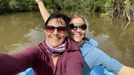 Wir werden herzlich begrüßt und bekommen unser Zimmer gezeigt. Es ist wunderschön, riesengroß, liebevoll ausgestattet und hat einen unglaublichen Ausblick zum Fluss. Nach einem super leckeren Mittagessen und einer Erfrischung im kleinen Pool geht’s zur ersten Erkundungstour mit dem Boot. Romulus zeigt uns viele Vögel und erklärt alles super. Sogar die ersten Brüllaffen entdecken wir schon. Den Abend lassen wir entspannt auf der Terrasse ausklingen.