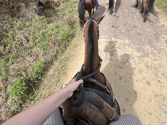 Schon beim Start war eine gewisse Ruhe zu spüren. Sobald man im Sattel sitzt, passt man sich automatisch dem Tempo der Pferde an – alles wird entschleunigter, bewusster. Der Weg führte uns durch grüne Hügel, vorbei an kleinen Wegen und immer wieder mit Ausblicken, bei denen man am liebsten kurz innehalten wollte.