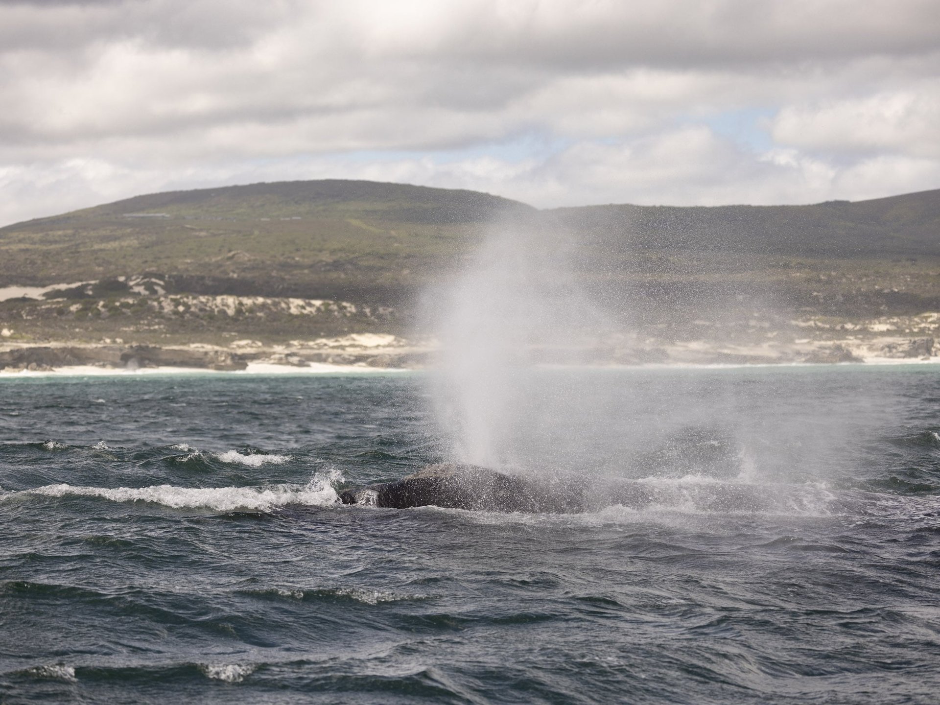 In Hermanus legte ich lediglich einen kurzen Kaffeestopp ein. Während ich mein Heißgetränk genoss und meinen Blick über das Meer schweifen ließ, fiel mir schon nach wenigen Minuten der erste Blas eines Wals auf. Tatsächlich: Nur wenige Hundert Meter von der Küste entfernt tauchte ein riesiger Wal auf und ab. Kurze Zeit später, bereits mit meinem Fernglas bewaffnet, entdeckte ich immer mehr dieser majestätischen Tiere. Es war ein fantastischer Vorgeschmack auf den nächsten Tag, an dem ich eine Waltour gebucht hatte, um den Walen noch näher zu kommen.