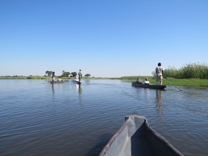 - Bootsfahrt mit einem traditionellen Mokoro im Okavango-Delta