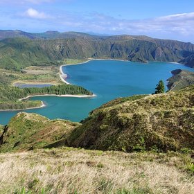 Blick auf einen Kratersee auf Sao Miguel