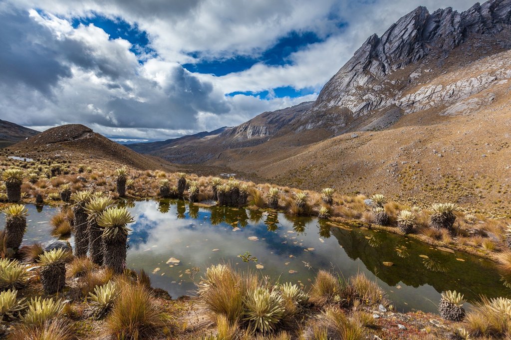 Heute fahren Sie durch das Gebiet des rund 830 km² großen Nationalparks Puracé, einer faszinierenden Landschaft im Süden der kolumbianischen Anden. Die Route führt durch dichten Nebelwald mit einer außergewöhnlich vielfältigen Flora und Fauna – über 200 Vogelarten, bunte Schmetterlinge und zahlreiche Insekten sind hier beheimatet. In höheren Lagen prägen weite Páramo-Vegetation und klare Bäche das Bild. Unterwegs bieten sich immer wieder beeindruckende Ausblicke auf die unberührte Natur und Wasserfälle, die über die bewaldeten Hänge stürzen.