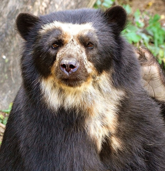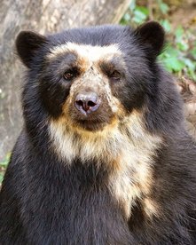 Spectacled Bear (Tremarctos ornatus) adult asleep in tree at rehabilitation centreChaparri, Peru                      February