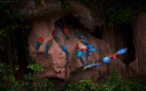- Bunte Papageien an der größten Lehmleckstelle der Welt