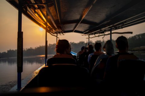 - Anreise per Boot zur Lodge, umgeben von Primärregenwald