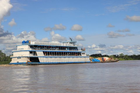 Das Flussschiff Eduardo bietet eine unvergessliche Reise von Yurimaguas nach Nauta, tief in das Herz des Amazonas. Auf dieser zweitägigen Flussfahrt erleben Passagiere das pulsierende Leben am und auf dem Wasser. An Bord des Eduardo, das unterschiedlich ausgestattete Kabinen bietet, können die Reisenden in Hängematten entspannen, die frische Brise genießen und den idyllischen Sonnenuntergang über dem Dschungel bestaunen. Das Schiff macht regelmäßige Stopps in kleinen Gemeinden entlang des Huallaga-Flusses und bietet Einblicke in das alltägliche Leben sowie die einzigartige Flora und Fauna des Amazonasbeckens. Eine faszinierende Reise, die sowohl Abenteuer als auch Erholung verspricht.