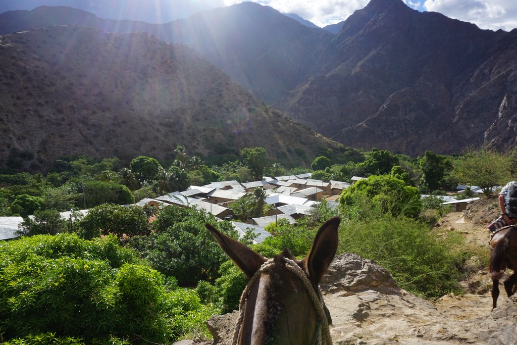 Heute haben wir genügend Zeit auf einer Strecke ohne lange Ritte. Nach dem Frühstück geht es steil bergauf. Wir bemerken sofort, dass die Temperatur etwas erträglicher und kühler wird. Vom Pferderücken aus blicken wir zurück und genießen die Aussicht über das Marañon-Tal. Schließlich erreichen wir die kleine Gemeinschaft Corontas, die zu unseren Pferdeführern Jorge und Edison gehört. Corontas ist ein neuer unglaublicher Ort, der sich so weit weg von zu Hause anfühlt wie man es sich nur vorstellen kann. Jorge und Edison sind professionelle Pferdetransporteure mit einer wichtigen Aufgabe, Waren zu verschiedenen Gemeinschaften zu transportieren. Zusätzlich sind sie selbst Landwirte, die in einer Höhe im Tal leben, wo der Boden gut und das Klima ideal für reiche und vielfältige Landwirtschaft ist. Nach dem Abendessen gibt es ein Lagerfeuer und eine kleine Feier mit den Familien. Wir werden in ihrem Kokatrockenraum untergebracht. Es wird angenehm sein, sich nach einem langen und herausfordernden Tag bei etwas kühlerer Temperatur auszuruhen.