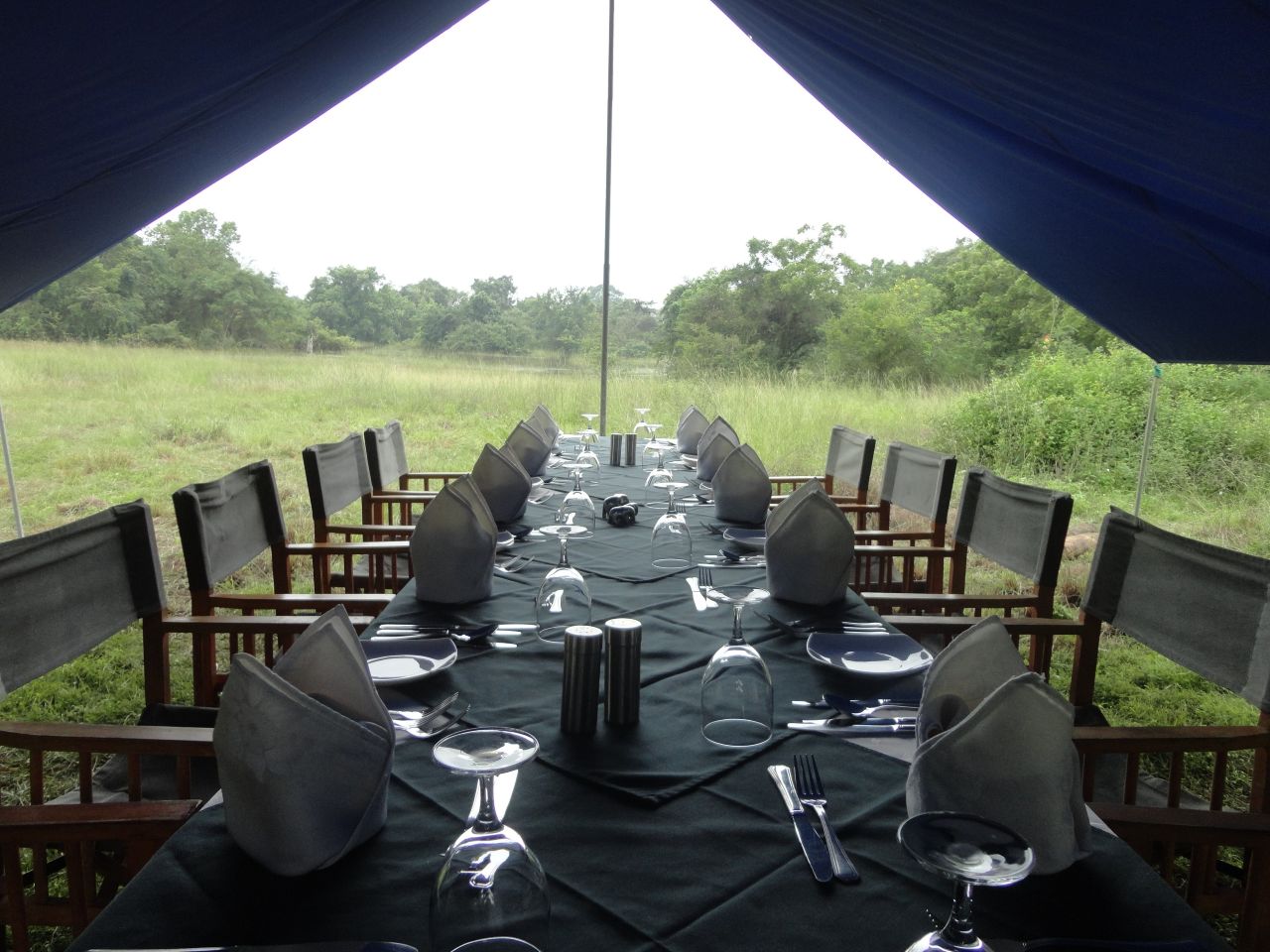 Mitten im dichten Buschland am Rand des Yala-Ökosystems liegt die Tree Tops Jungle Lodge wie ein kleines Dschungelcamp: nur drei Zelt-Chalets aus Lehm und Canvas, bewusst ohne „Hotel“-Ausbau. Vor der Veranda lockt ein Wasserloch Vögel und andere Tiere an. Eine ausgewogene Mischung aus Einfachheit und exzellentem Service.