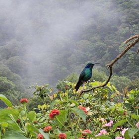 Weiterfahrt (ca 3,5 h) in die Berge auf 2600 m Höhe zur Dantica (bedeutet Tapir) Lodge im Nebelwald (ca. 2h südlich von San Jose). Frisch (nachts leicht 4°C), wir frieren ein bisschen. Heizung vorhanden.- Hier suchen (und finden) wir den sagenhaften Quetzalvogel, da muss man Opfer bringen. Die nachtaktiven Tapire sind uns nicht über den Weg gelaufen.